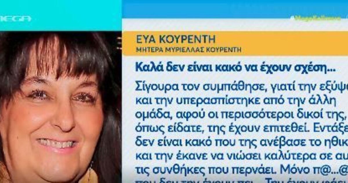 Η μητέρα της Μυριέλλας Κουρεντή, Εύα, μίλησε σε γνωστό περιοδικό για όσα συμβαίνουν με την κόρη της στο Survivor και ανέφερε πως η Μυριέλλα δεν χρησιμοποιεί τον Κατσαούνη προς όφελός της.