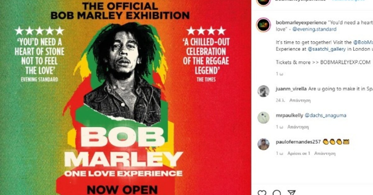 Την ιστορία της ζωής του αείμνηστου Τζαμαϊκανού τραγουδιστή της reggae, Μπομπ Μάρλεϊ αφηγείται η έκθεση «One Love Experience» που φιλοξενείται αρχικά στη γκαλερί Saatchi του Λονδίνου και στη συνέχεια θα παρουσιαστεί σε πολλές πόλεις του Ηνωμένου Βασιλείου.