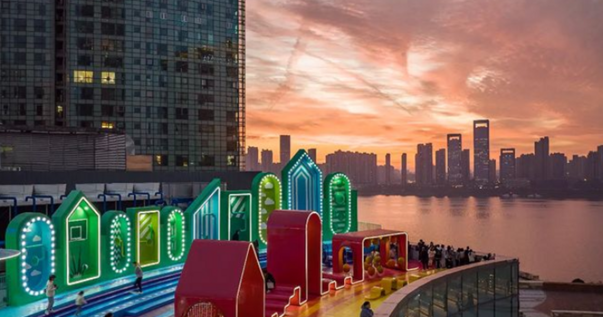 Πάνω από το ουράνιο τόξο προσκαλεί τον κόσμο η ζωηρόχρωμη παρέμβαση του γραφείου 100architects σε βεράντα στέγης στην Chagsha.