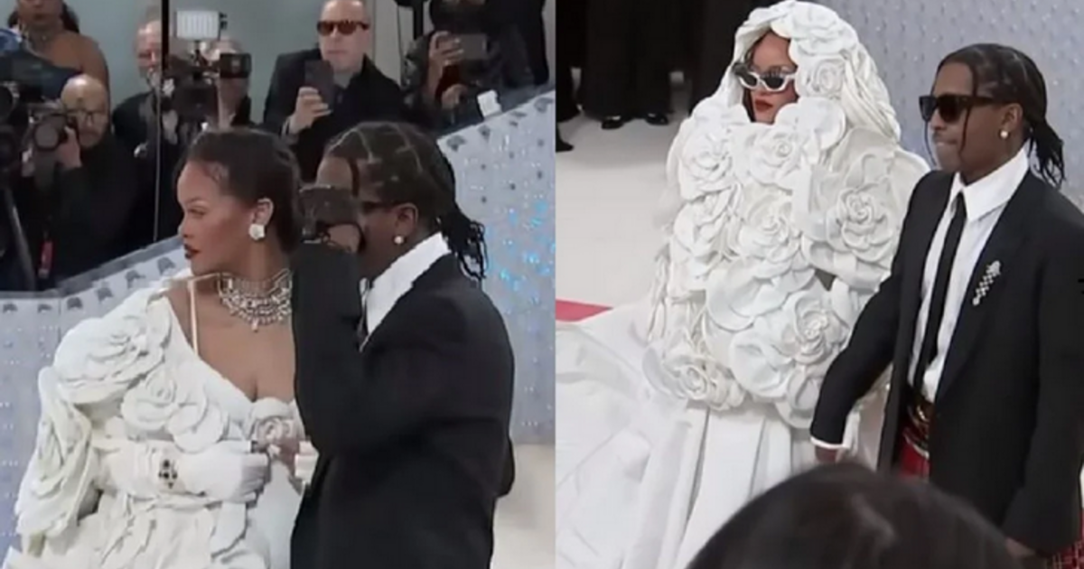 Με μία λευκή τουαλέτα εμφανίστηκε στο Met Gala η εγκυμονούσα Ριάνα, “φουντώνοντας” τις φήμες που την θέλουν να έχει παντρευτεί με τον σύντροφό της και ράπερ A$AP Rocky.