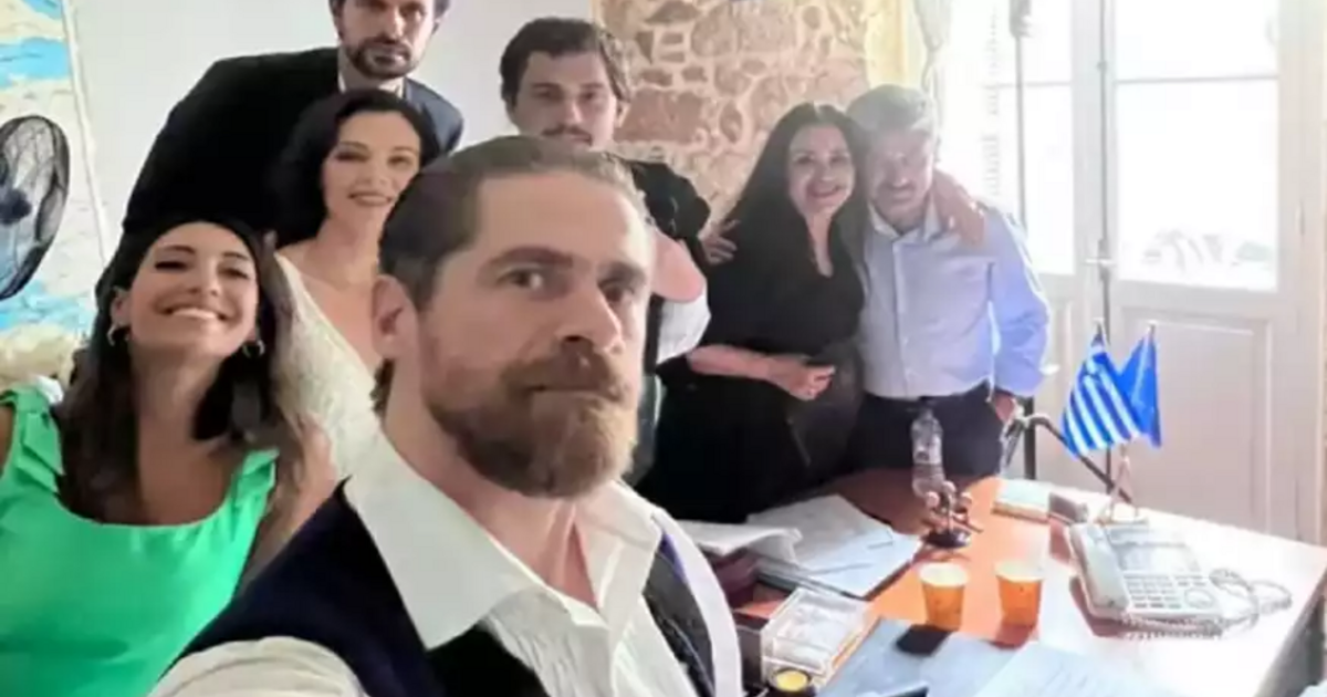 Στη φωτογραφία που ανέβασε ο Δημήτρης Λάλος, ο «Μαθιός» στη σειρά, προχώρησε σε… αποκαλύψεις για τις εξελίξεις στο σίριαλ. Ο ηθοποιός ποζάρει στο αστυνομικό τμήμα, μαζί με τους Δημήτρη Ήμελλο, Μαρία Τζομπανάκη, Ορφέα Αυγουστίδη, Γιώργο Αμούτζα και Ευγενία Σαμαρά, ενώ μαζί τους, φορώντας το νυφικό της, είναι και η Μαριλίτα Λαμπροπούλου. Σε αυτή, οι πρωταγωνιστές φορούν τα ρούχα που φορούσαν στην τελευταία σκηνή, όπου ο Αντώνης Φραγκιαδάκης συλλαμβάνει τον «Μαθιό» ως ύποπτο για τον θάνατο του «Αγγελου», την ώρα που εκείνος κατευθύνεται προς την εκκλησία για να παντρευτεί την αγαπημένη του «Βασιλική».