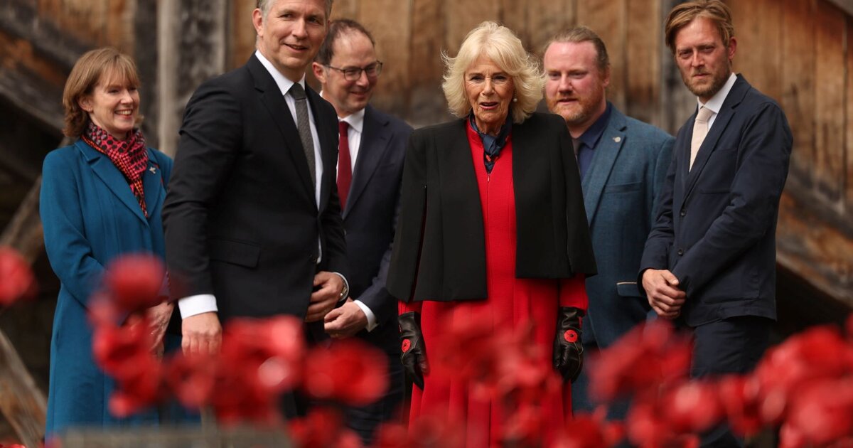 Σε μνημείο από παπαρούνες στο πλαίσιο των εκδηλώσεων για το τέλος του Β΄ Παγκοσμίου Πολέμου, η βασίλισσα Καμίλα