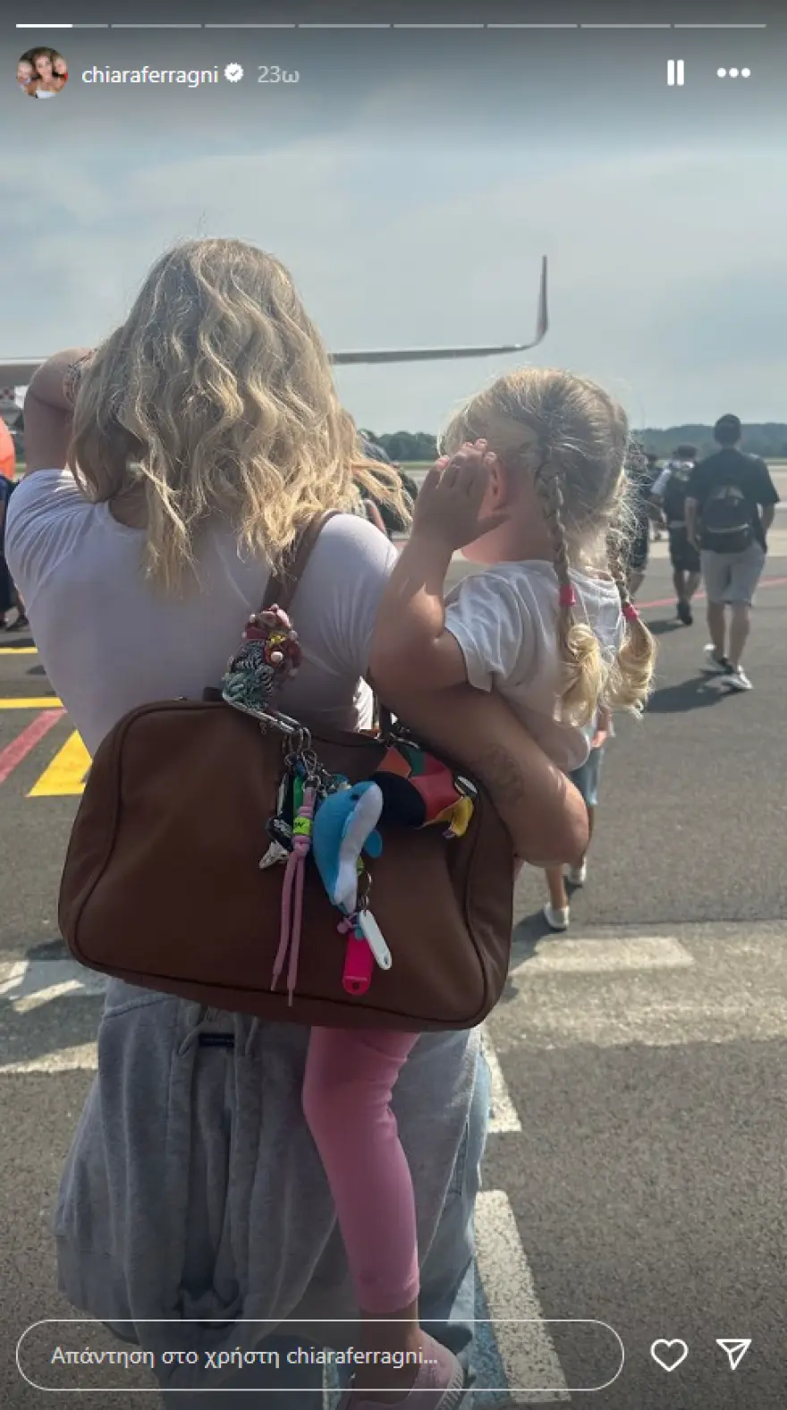 Σε stories της, μοιράστηκε μερικά στιγμιότυπα από την άφιξή τους στην Ελλάδα, ενώ ακριβώς την προηγούμενη ημέρα ήταν στο Μιλάνο.