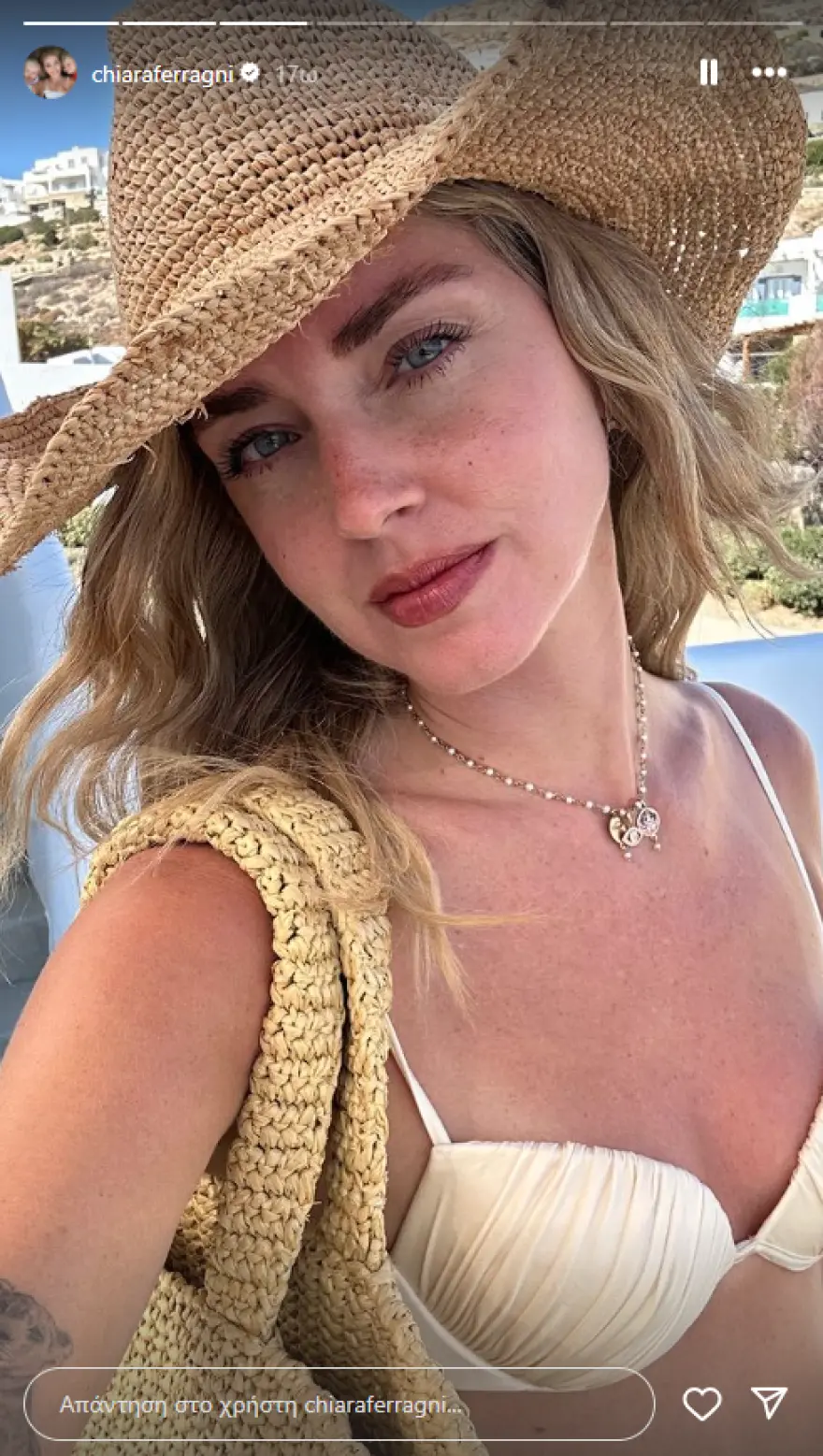 Η Ιταλίδα influencer, μέσω του λογαριασμού της στο Instagram, γνωστοποίησε ότι κάνει διακοπές στη χώρα μας - την οποία επιλέγει συχνά - αλλά δεν διευκρίνισε πού βρίσκεται ακριβώς.