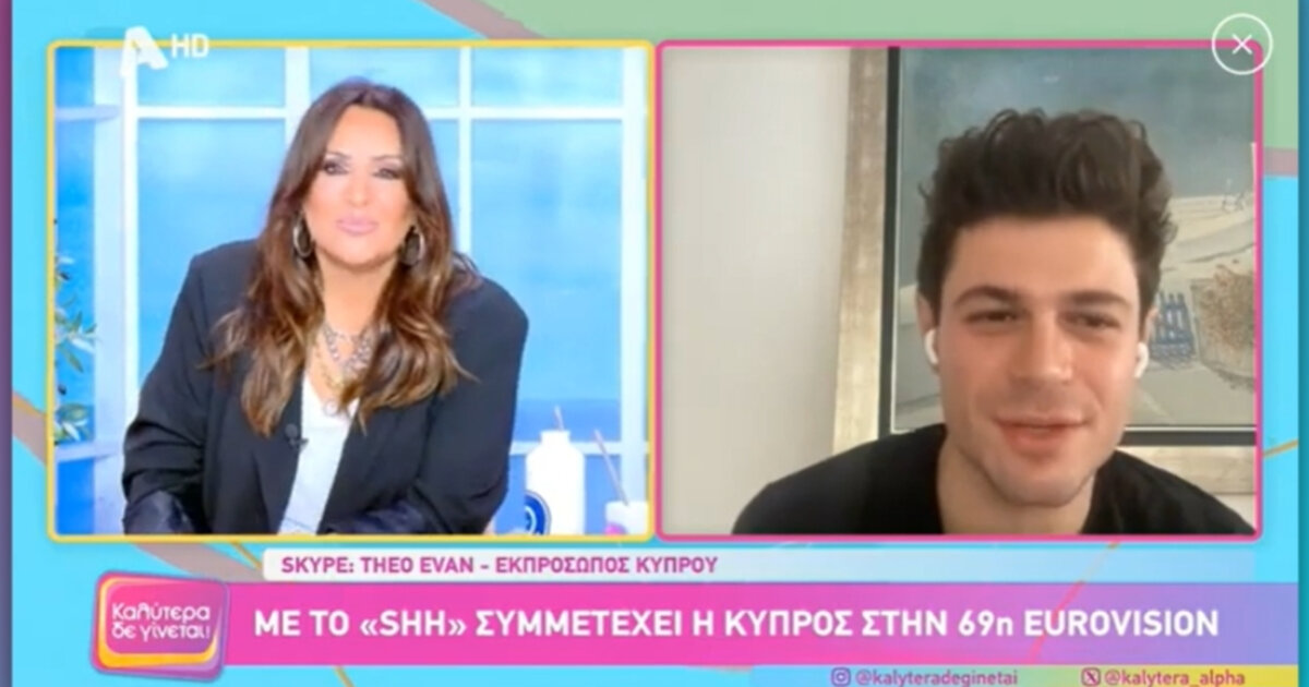 Ο εκπρόσωπος της Κύπρου στην Eurovision 2025 Theo Evan εμφανίσθηκε στην εκπομπή του ALPHA με την Ναταλία Γερμανού “Καλύτερα Δε Γίνεται” και μίλησε για το τραγούδι του “Shh” το οποίο δημοσιοποιήθηκε πριν λίγες μέρες.