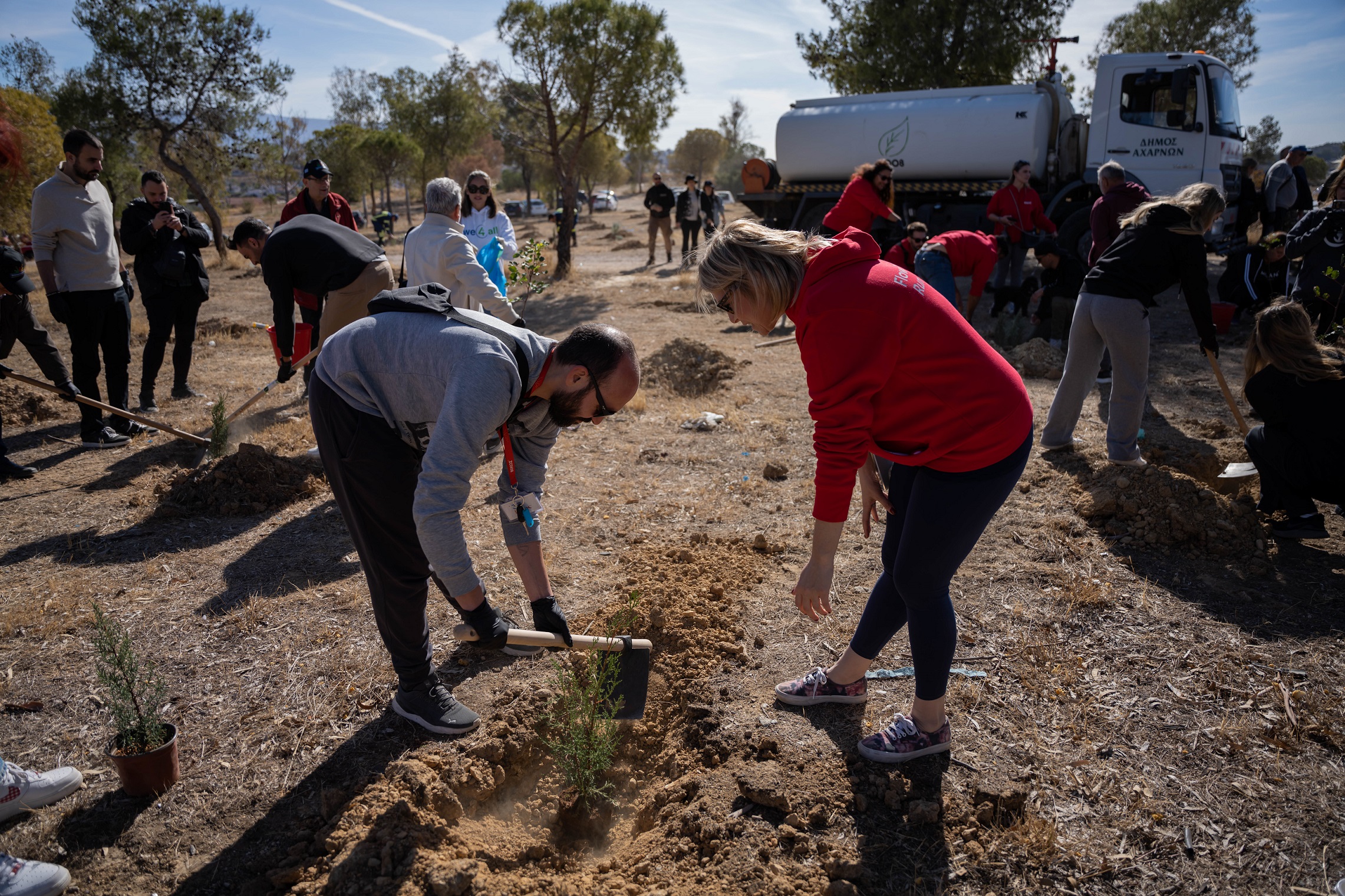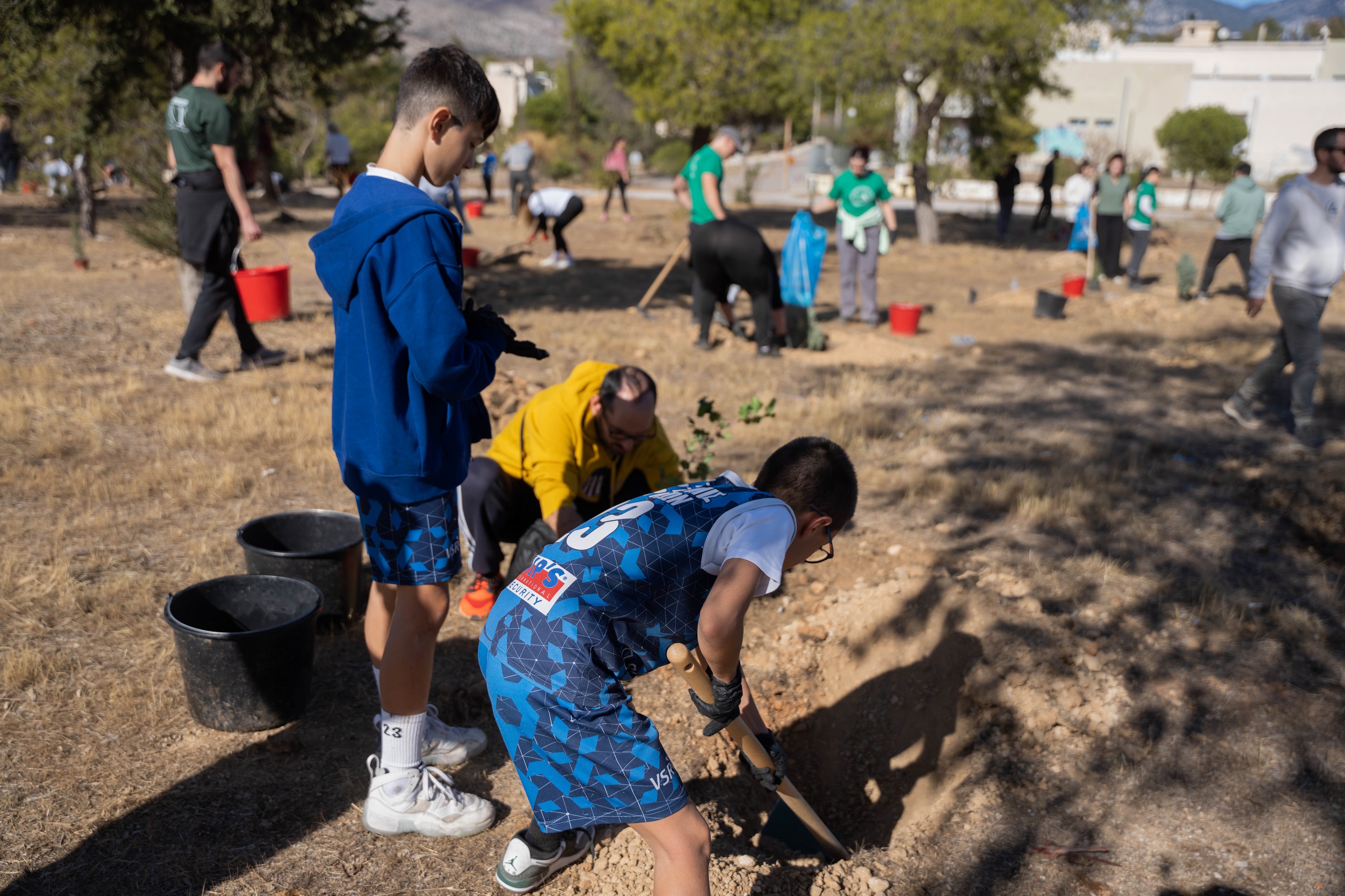 Το μεσημέρι του περασμένου Σαββάτου (09.11.2024) μικροί και μεγάλοι, πάνω από 250 άνθρωποι, συγκεντρώθηκαν στον Λόφο Σαράντα Μαρτύρων στις Αχαρνές, σήκωσαν τα μανίκια και εργάστηκαν, πλάι πλάι, για το Περιβάλλον. Φυτεύτηκαν συνολικά 1.000 δενδρύλλια και μάλιστα επιλέχθηκαν δυναμικά, δύσφλεκτα και κατάλληλα για το οικοσύστημα.
