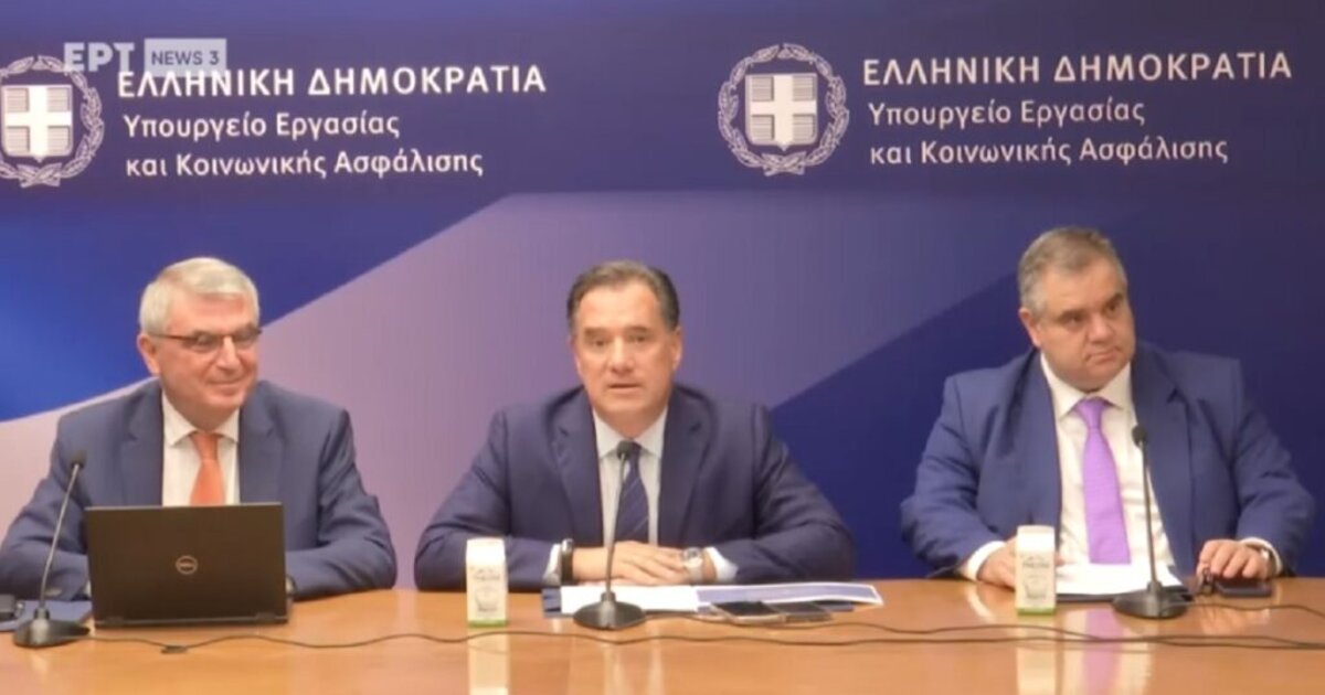 Συνέντευξη τύπου για το μίνι ασφαλιστικό νομοσχέδιο που πήρε το «πράσινο φως» από το υπουργικό συμβούλιο της Τετάρτης παρχώρησε η ηγεσία του υπουργείου Εργασίας υπό τον Άδωνι Γεωργιάδη.