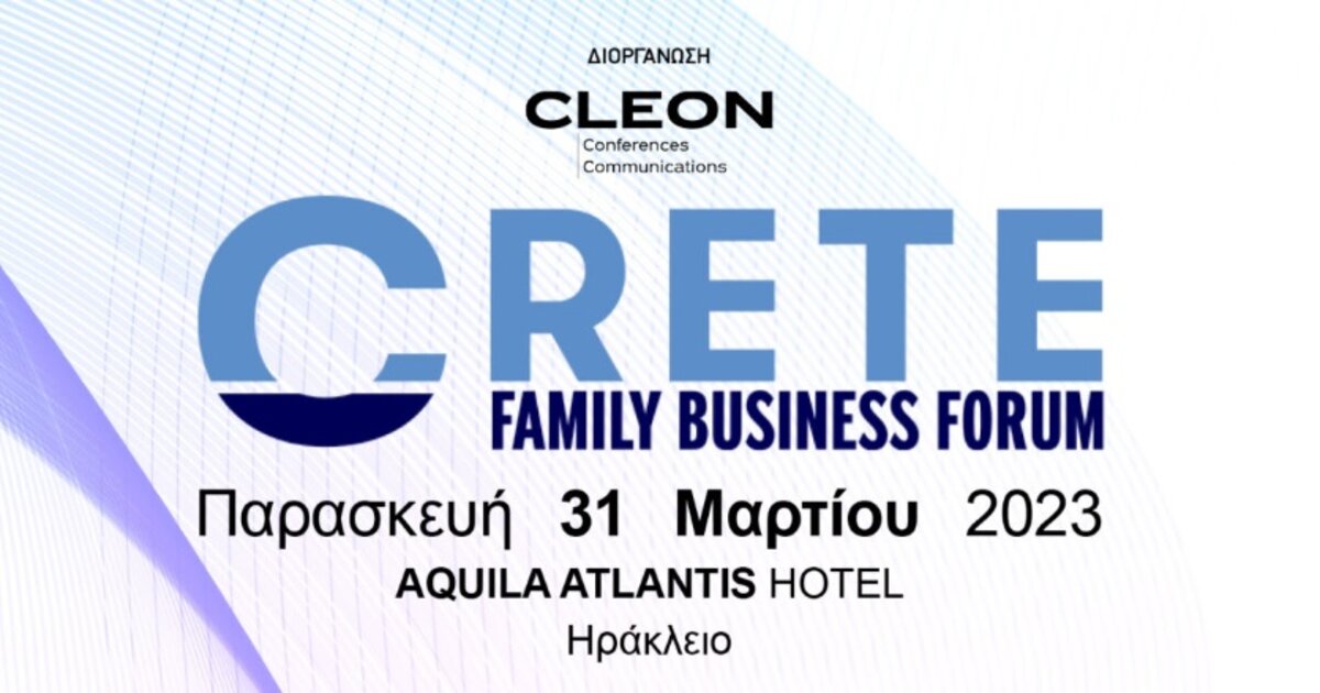 Η CLEON Conferences & Conferences διοργανώνει το 1st CRETE FAMILY BUSINESS FORUM, το οποίο θα αποτελεί σημείο συνάντησης και δημιουργικού διαλόγου μεταξύ επιχειρήσεων και ιδιωτών επενδυτών που δραστηριοποιούνται στην βιομηχανία, τον τουρισμό και την παροχή υπηρεσιών.