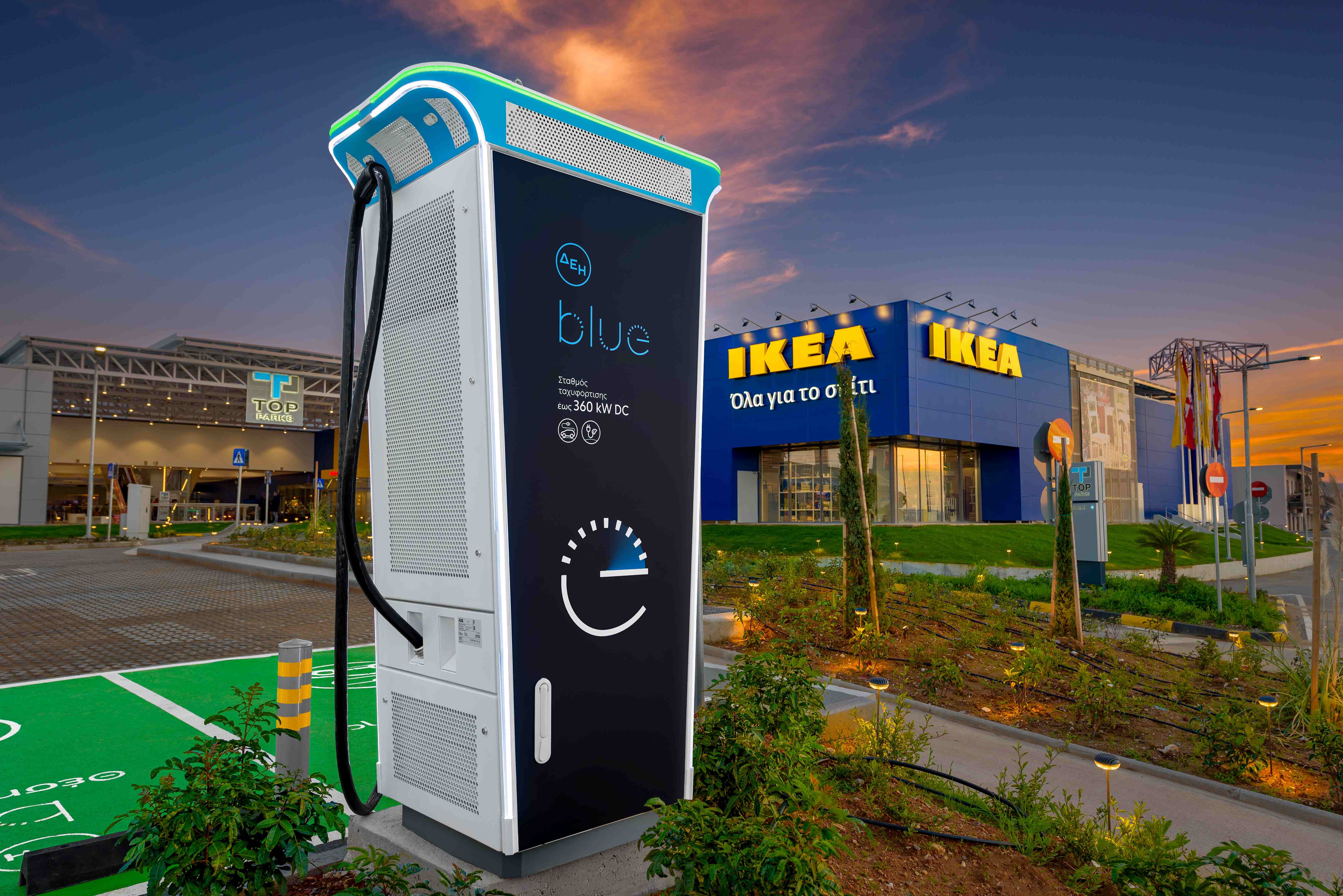Το δημόσιο δίκτυο φόρτισης της ΔΕΗ blue ενισχύεται σημαντικά με την προσθήκη του νέου υπερταχυφορτιστή 360 kW στο ΔΕΗ blue Hub στο Εμπορικό Πάρκο Πάτρας, Top Parks, το οποίο στεγάζει την ΙΚΕΑ. Με συνολική ισχύ 1,2 MW, το νέο ΔΕΗ blue Hub υποστηρίζει την ταυτόχρονη φόρτιση έως και 29 οχημάτων. Περιλαμβάνει 21 θέσεις φόρτισης έως 22kW (AC), 6 θέσεις φόρτισης ισχύος έως 180kW και 2 θέσεις φόρτισης ισχύος έως 360kW (HPDC) για ταχύτατη φόρτιση των οχημάτων.