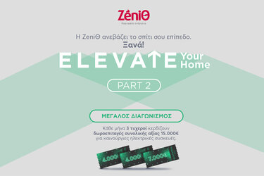 Μερικές ευκαιρίες έχουν δύναμη που δεν φαίνεται με την πρώτη ματιά, αλλά ... τη νιώθεις. Σε εμπνέουν να κάνεις το επόμενο βήμα! Η ZeniΘ το γνωρίζει καλά και επαναφέρει τον επιτυχημένο διαγωνισμό «Elevate your Home Part 2», δίνοντάς σου τη δυνατότητα να αναβαθμίσεις το σπίτι σου, όπως ακριβώς το έχεις φανταστεί.
