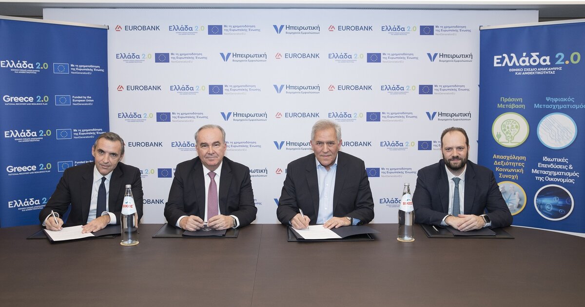 Στην υπογραφή σύμβασης χρηματοδότησης €50,3 εκατ. με την Ηπειρωτική Βιομηχανία Εμφιαλώσεων Α.Ε. προχώρησε η Eurobank, με τη συμμετοχή του Ταμείου Ανάκαμψης και Ανθεκτικότητας (ΤΑΑ) για τη χρηματοδότηση επένδυσης συνολικού ύψους €62,8 εκατ. που υλοποιεί η εταιρεία στο πλαίσιο του Εθνικού Σχεδίου Ανάκαμψης και Ανθεκτικότητας «Ελλάδα 2.0» με πόρους της Ευρωπαϊκής Ένωσης – NextGenerationEU.