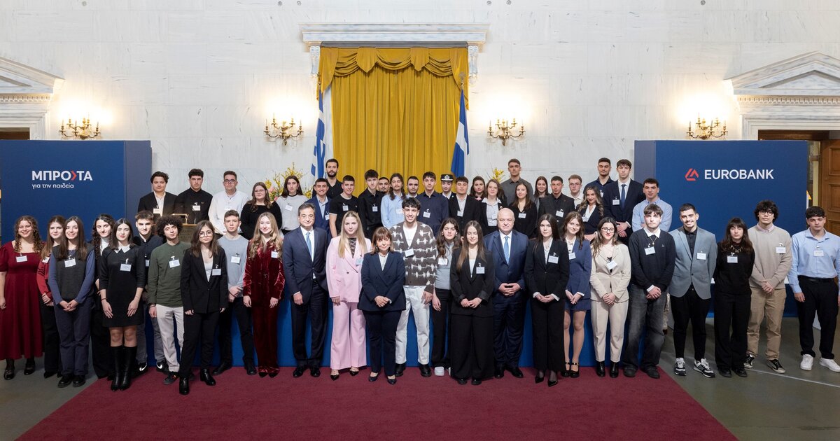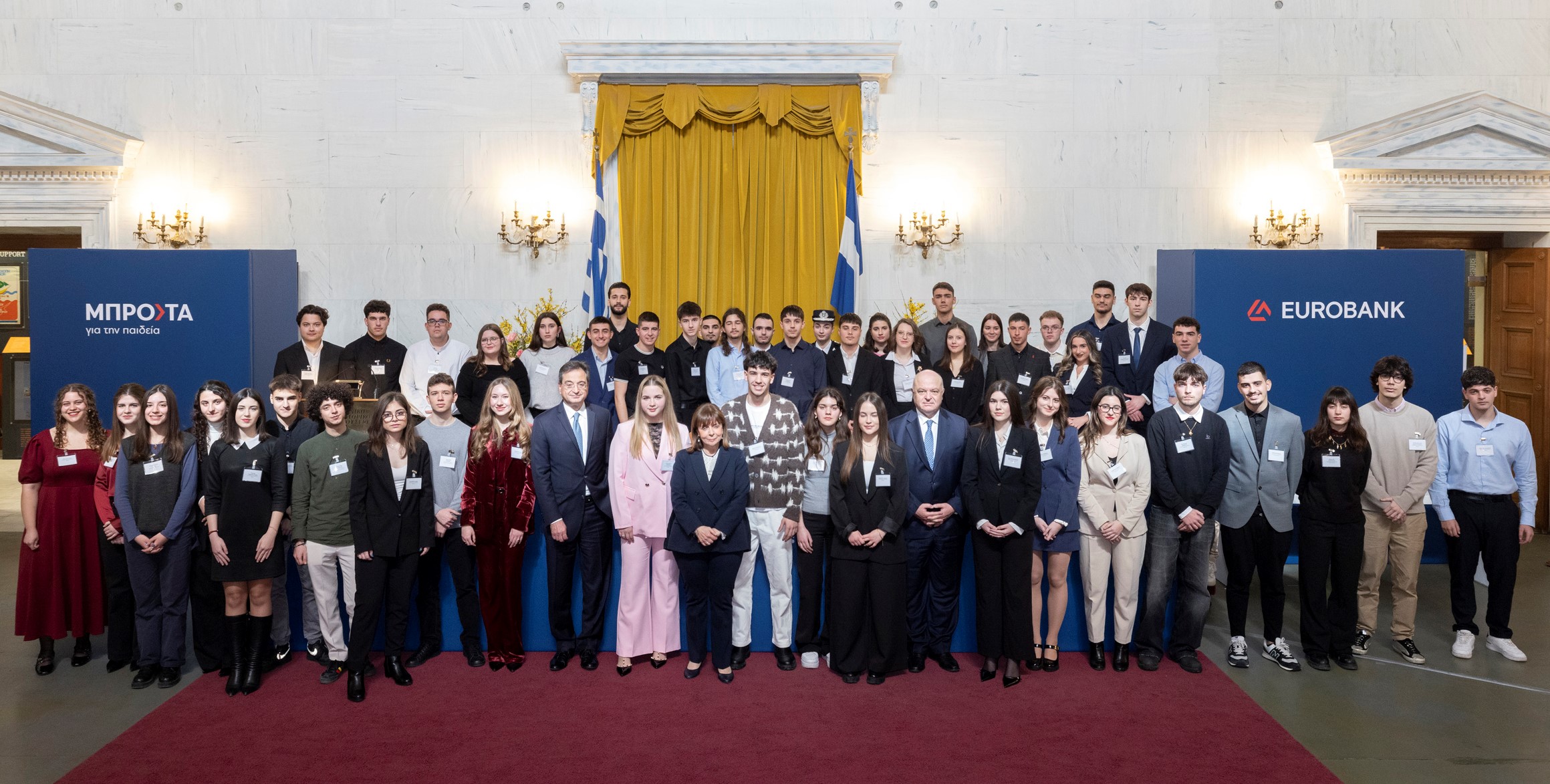 Τους 58 «Πρώτους των Πρώτων» αριστούχους αποφοίτους Λυκείων από όλη την Ελλάδα, που πρώτευσαν στις Περιφέρειές τους στις πανελλαδικές εξετάσεις, βράβευσε η Eurobank στο πλαίσιο του προγράμματος Μπροστά για την Παιδεία, σε εκδήλωση που πραγματοποιήθηκε στην Αίθουσα Μεγάρου της Παλαιάς Βουλής, την Τρίτη, 18 Φεβρουαρίου 2025, παρουσία της Α.Ε. της Προέδρου της Δημοκρατίας Κατερίνας Σακελλαροπούλου.