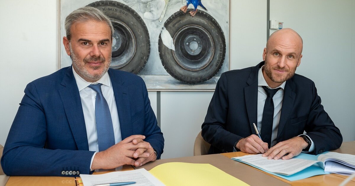 Στην φωτογραφία ο ΓΓ του ΕΟΤ, Δημήτρης Φραγκάκης, υπογράφει τη συμφωνία με τον Διευθυντή Ευρώπης του τμήματος Michelin Experiences, Tommy Maussin.