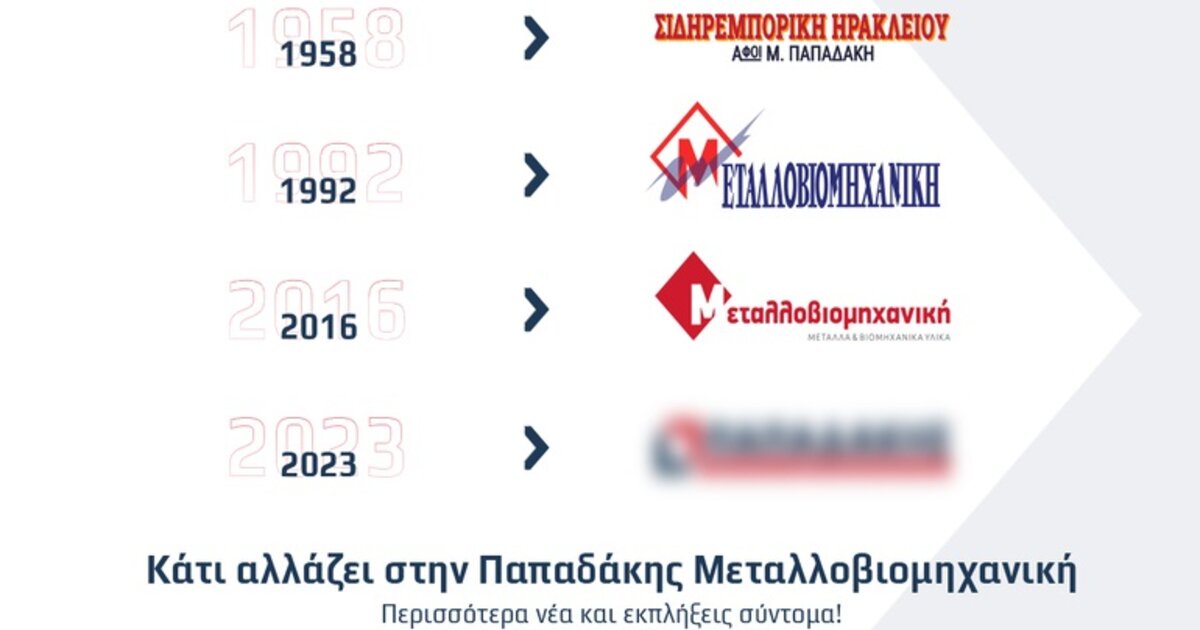 Αφετηρία της συζήτησης υπήρξε η διαχρονική σχέση του κόσμου με την επιχειρηματική δραστηριότητα της οικογένειας Παπαδάκη που δραστηριοποιείται αδιάλειπτα από το 1955 στον τομέα της διάθεσης εργαλείων, μετάλλων και βιομηχανικού υλικού. Η σχέση αυτή εμπιστοσύνης γέννησε το σλόγκαν «Ό,τι θέλεις θα το βρεις στον Παπαδάκη» και όπως επισημαίνει ο σημερινός ιδιοκτήτης «με το rebranding προχωράμε αφενός στη νέα εποχή της εταιρίας αλλά ταυτόχρονα τιμάμε τις προηγούμενες γενιές που συνέβαλαν στο να εδραιωθεί η επωνυμία μας». Έτσι, πλέον, η «Παπαδάκης Μεταλλοβιομηχανική» εισέρχεται στη νέα της αναπτυξιακή περίοδο με φρέσκο όραμα και ιδέες αλλά μένοντας παράλληλα προσηλωμένη στο αξιακό πρότυπο που δόμησε τη δημοφιλία της.