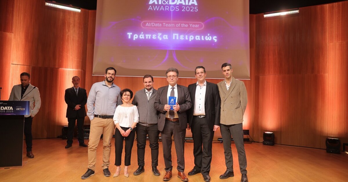 Η Πειραιώς κατέκτησε έξι βραβεία, συμπεριλαμβανομένης της ανώτατης διάκρισης “AI/Data Team of the Year”, στην πρώτη διοργάνωση των AI & Data Awards στην Ελλάδα από τη BOUSSIAS Events. Η διάκριση “AI/Data Team of the Year”, που απονέμεται πρώτη φορά αναγνωρίζει την ηγετική θέση της Τράπεζας στον τομέα της Τεχνητής Νοημοσύνης (AI) και των δεδομένων (Data).