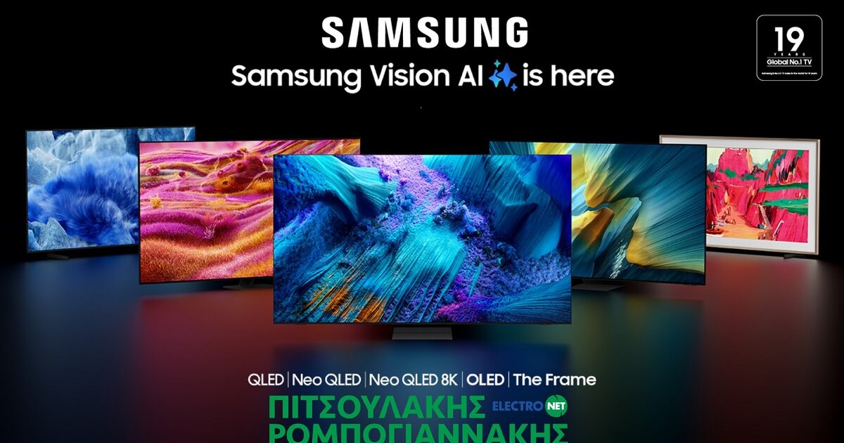 Η Samsung παρουσίασε τις νέες τηλεοράσεις του 2025, οι οποίες ενσωματώνουν τεχνολογία Τεχνητής Νοημοσύνης (AI) για την απόλυτη εμπειρία θέασης. Οι νέες σειρές περιλαμβάνουν τις QLED, Neo QLED, OLED και Crystal UHD, καθώς και τη σειρά The Frame, καλύπτοντας διαφορετικές ανάγκες και προϋπολογισμούς.