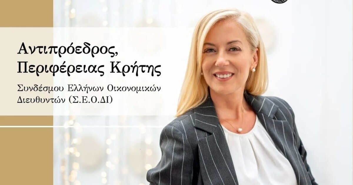 "Με ιδιαίτερη τιμή ανακοινώνω την ανάληψη των καθηκόντων μου ως Αντιπρόεδρος Κρήτης του Συνδέσμου Ελλήνων Οικονομικών Διευθυντών (Σ.Ε.Ο.ΔΙ.). Ως Οικονομολόγος με πολυετή εμπειρία, στόχος μου είναι να συμβάλλω στην επέκταση και ανάπτυξη του Συνδέσμου στην Κρήτη, προσκαλώντας τους διακεκριμένους Οικονομικούς Διευθυντές του νησιού μας να συμμετάσχουν ενεργά. Η ισχυρή επιχειρηματική δραστηριότητα του νησιού δημιουργεί ευρύ πεδίο και γόνιμο έδαφος για τη δράση του Σ.Ε.Ο.ΔΙ.