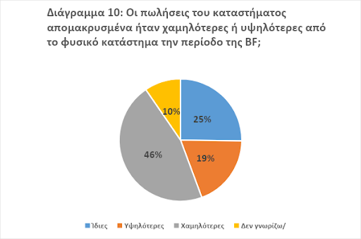- Η πρόθεση των επιχειρήσεων του λιανικού εμπορίου να ενισχύσουν τη συμμετοχή τους στην πρακτική της «Black Friday» υπαγορεύεται ουσιαστικά από την πολιτική των μεγάλων αλυσίδων λιανικής, οι οποίες έχουν αναπόφευκτα επιβάλει αυτήν την ενέργεια ως θεσμό.