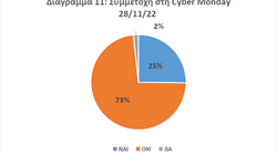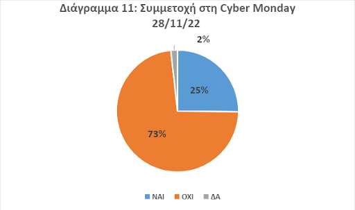 - Οι περισσότερες επιχειρήσεις δεν συμμετείχαν στη “Cyber Monday” εξαιτίας και της σχετικά χαμηλού επιπέδου ψηφιοποίησης των επιχειρήσεων (Διάγραμμα 11). Το εύρημα αυτό θα πρέπει να ληφθεί σοβαρά υπόψη για την ενδυνάμωση του ψηφιακού μετασχηματισμού, κυρίως των micro επιχειρήσεων, οι οποίες ουσιαστικά αποκλείονται από σχετικά ευρωπαϊκά προγράμματα χρηματοδότησης.