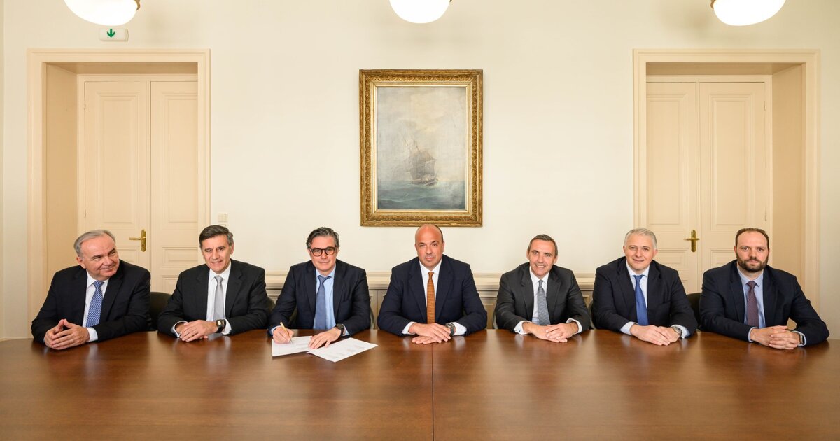 Κεντρική φωτογραφία: (από αριστερά προς δεξιά): O Αναπληρωτής Υπουργός Εθνικής Οικονομίας και Οικονομικών, Νίκος Παπαθανάσης, ο Chief of Wholesale Banking της Alpha Bank, Γιάννης Εμίρης, ο Διευθύνων Σύμβουλος της RWE Renewables Hellas Μ.Α.Ε. και της ΜΕΤΩΝ Ενεργειακή Α.Ε., Κώστας Παπαμαντέλλος, ο Διευθύνων Σύμβουλος της ΔΕΗ Ανανεώσιμες Α.Ε. και Πρόεδρος Δ.Σ. της ΜΕΤΩΝ Ενεργειακή Α.Ε., Κωνσταντίνος Μαύρος, ο Αναπληρωτής Διευθύνων Σύμβουλος της Eurobank και Επικεφαλής Corporate & Investment Banking, Κωνσταντίνος Βασιλείου, ο Γενικός Διευθυντής Εταιρικής & Επενδυτικής Τραπεζικής της Εθνικής Τράπεζας, Βασίλης Καραμούζης και ο Διοικητής της Ειδικής Υπηρεσίας Συντονισμού του Ταμείου Ανάκαμψης, Ορέστης Καβαλάκης κατά την τελετή υπογραφής των δανειακών συμβάσεων για την κατασκευή τεσσάρων φωτοβολταϊκών έργων στο Αμύνταιο, με τη συμβολή του Ταμείου Ανάκαμψης και Ανθεκτικότητας.