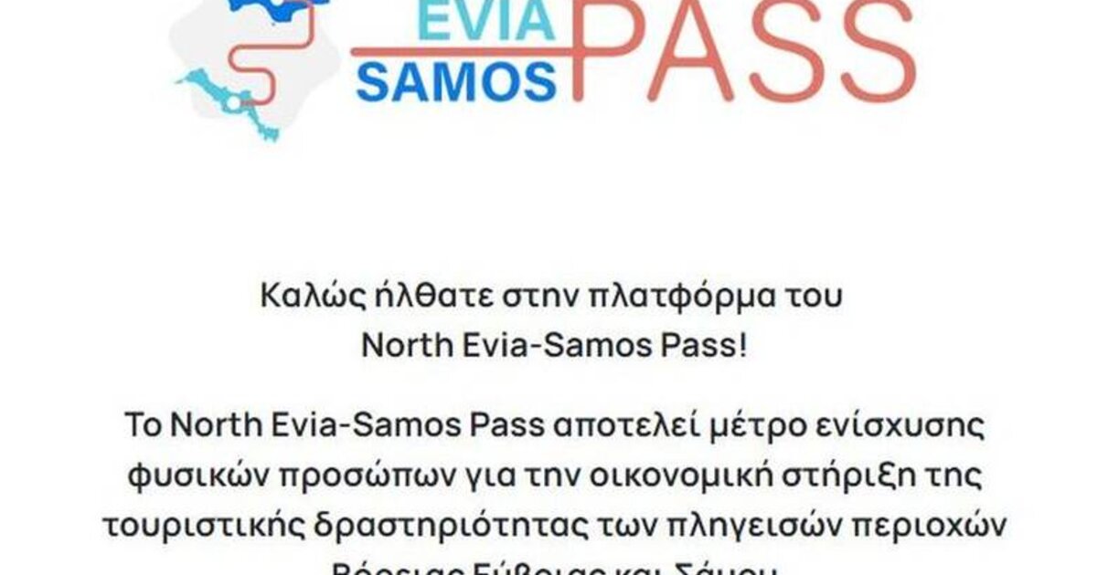 Άνοιξε σήμερα, Πέμπτη, στις 12:00 το North Evia-Samos Pass μέσω του vouchers.gov.gr, όπου και μπορούν να κάνουν τις αιτήσεις οι ενδιαφερόμενοι για την επιδότηση στις διακοπές σε βόρεια Εύβοια και Σάμο.