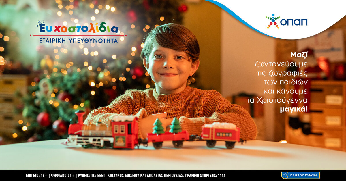 Χιλιάδες παιδιά που έχουν πραγματική ανάγκη θα δουν, για ένατη χρονιά, τις χριστουγεννιάτικες ευχές τους να πραγματοποιούνται μέσα από την πρωτοβουλία Ευχοστολίδια, που υλοποιεί ο ΟΠΑΠ. Παραμένοντας ενεργά δίπλα στην ελληνική κοινωνία και στη νέα γενιά, ο ΟΠΑΠ μας καλεί όλους να συμμετάσχουμε κι εφέτος τα Χριστούγεννα σε αυτή τη μεγάλη γιορτή προσφοράς και αγάπης, με στόχο να εκπληρωθούν οι ευχές χιλιάδων παιδιών από τον Οργανισμό «Το Χαμόγελο του Παιδιού» και την Ένωση «Μαζί για το Παιδί».