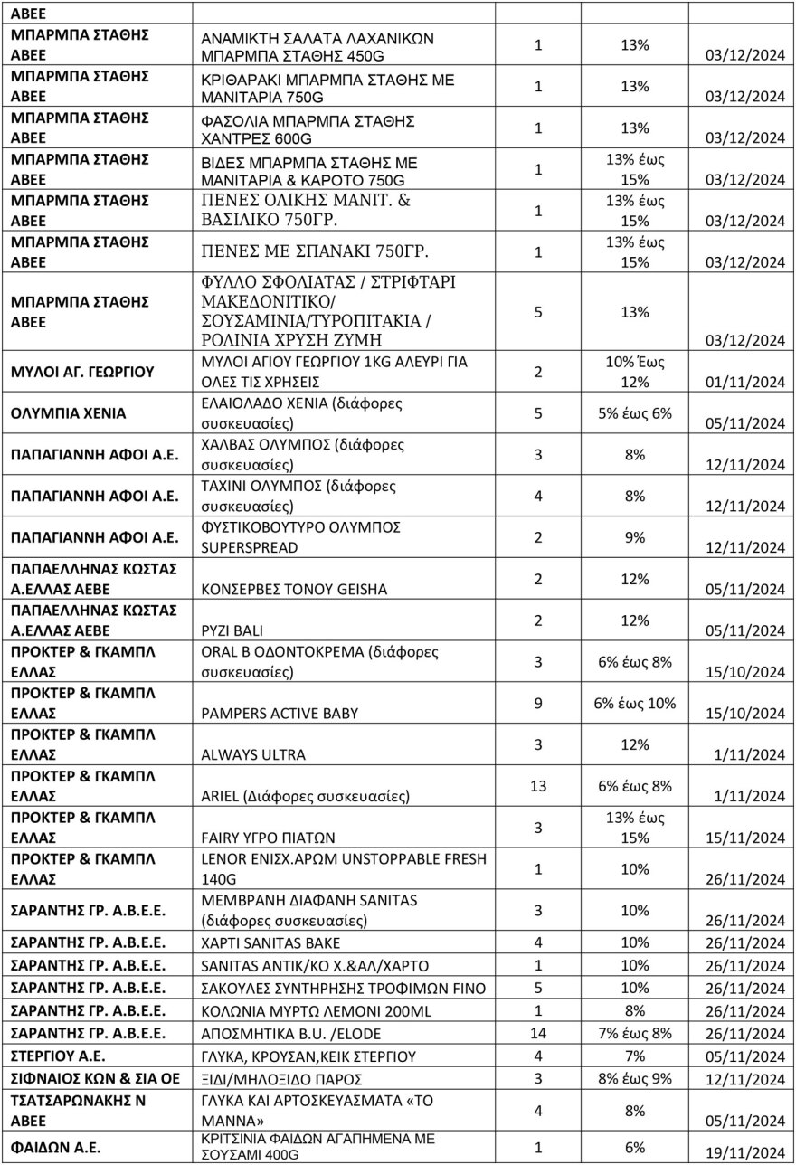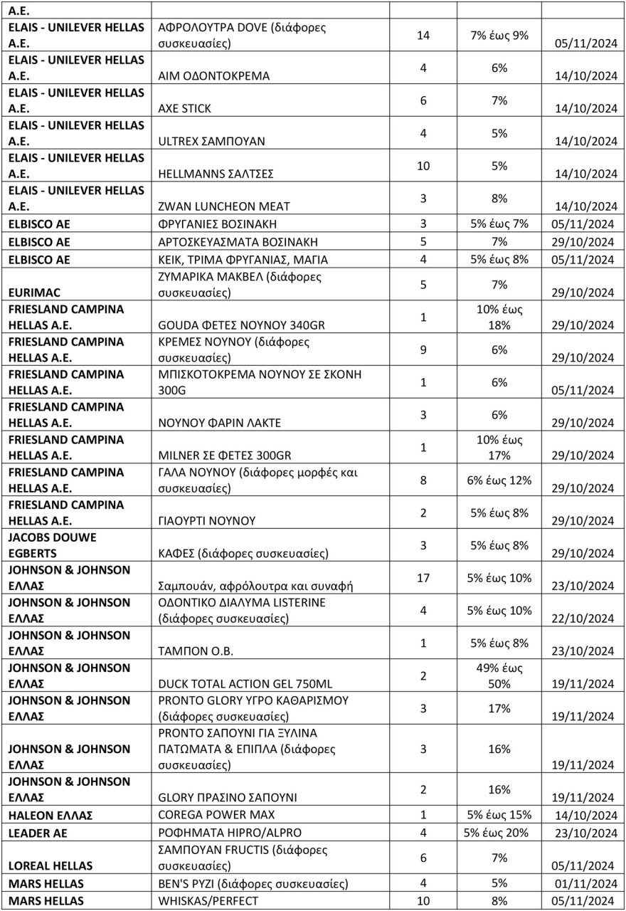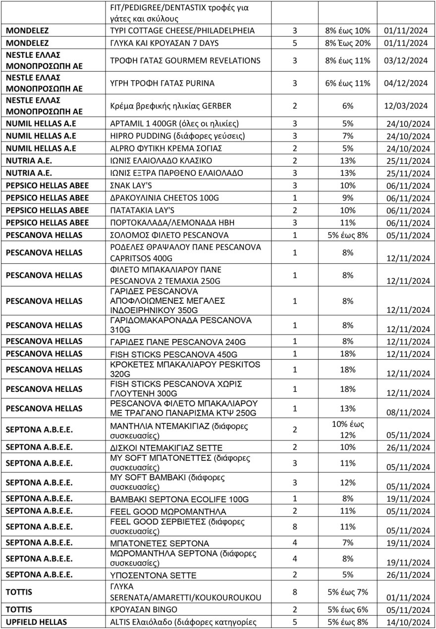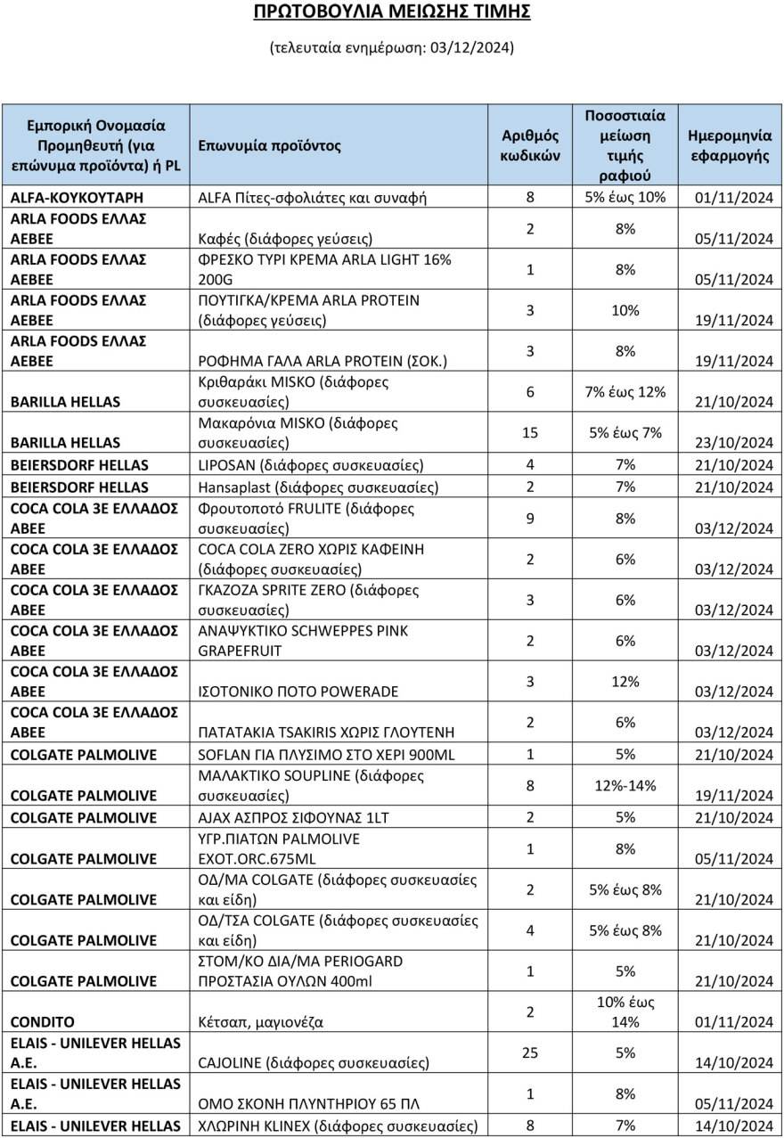 Σούπερ Μάρκετ: Η νέα λίστα με τους 671 κωδικούς προϊόντων με εκπτώσεις 5% έως 24%