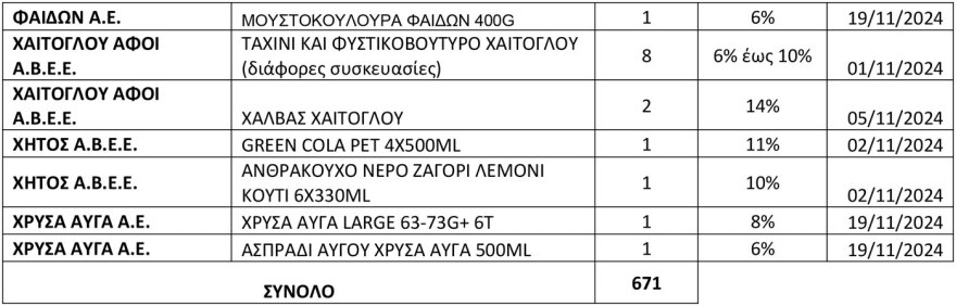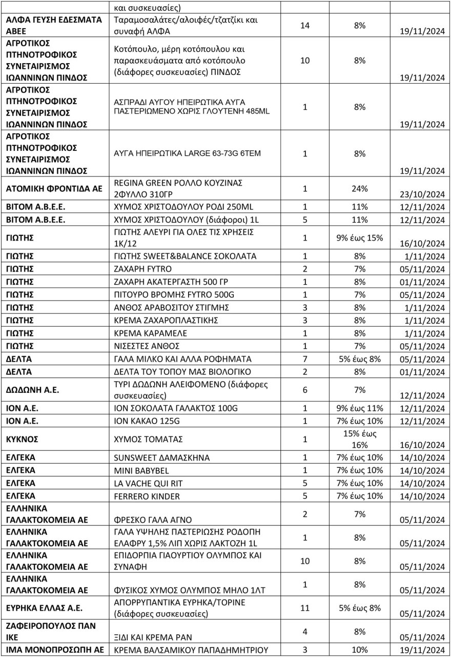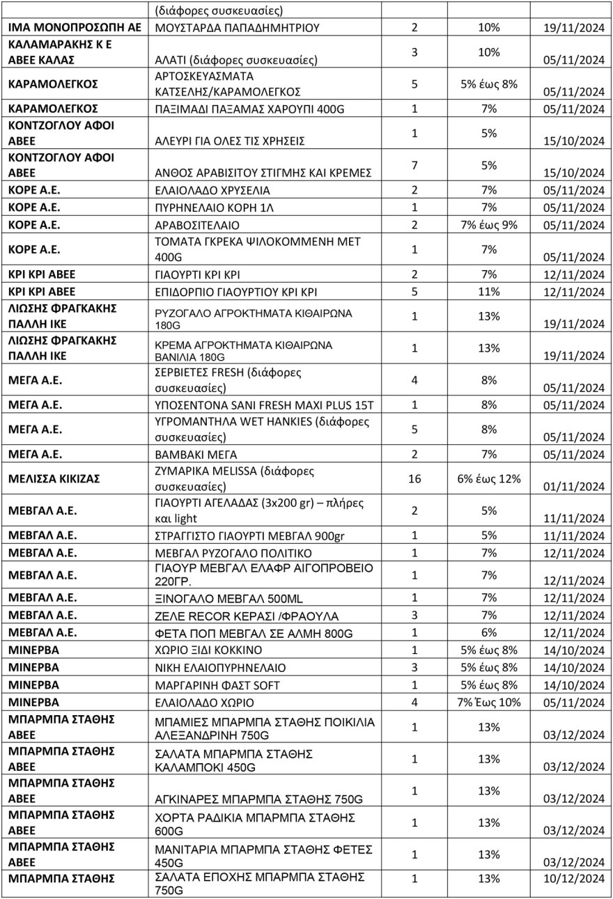 Δείτε παρακάτω τη λίστα με τα προϊόντα
