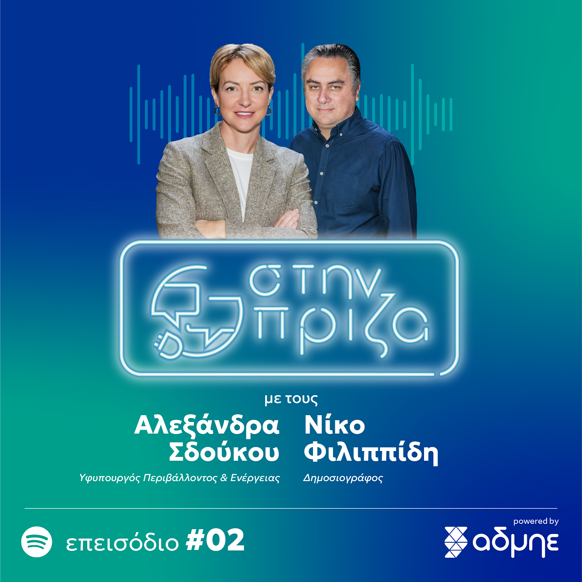 Με καλεσμένη την υφυπουργό Περιβάλλοντος και Ενέργειας, Αλεξάνδρα Σδούκου, συνεχίζεται η νέα σειρά podcast «Στην πρίζα», powered by ΑΔΜΗΕ, που φιλοξενεί κάθε Τρίτη διακεκριμένους καλεσμένους από τον χώρο της ενέργειας.