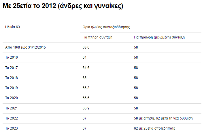 - Το 60ό έτος για άνδρες με 25ετία έως το 2010.