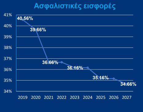 • Από το 2019 έως το 2027, οι ασφαλιστικές εισφορές θα έχουν μειωθεί κατά σχεδόν 6 ποσοστιαίες μονάδες.