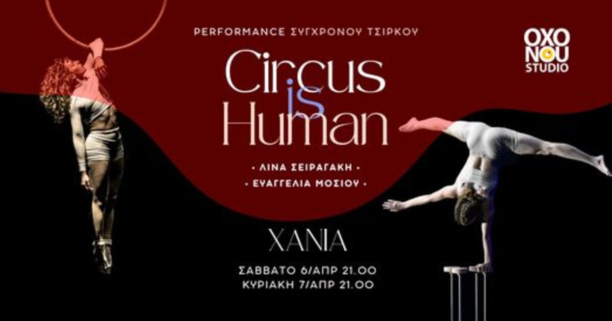 Η παράσταση σύγχρονου τσίρκου 𝐂𝐢𝐫𝐜𝐮𝐬 𝐢𝐬 𝐇𝐮𝐦𝐚𝐧, μετά από μια χρονιά επιτυχημένων παραστάσεων ανά την Ελλάδα, δίνει ραντεβού σε έναν σημαντικό σταθμό πολιτισμού, τα Χανιά, στις 6 και 7 Απριλίου