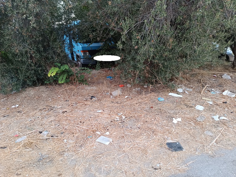 2. Δέησε ο Δήμος φέτος μετά από οχλήσεις να το καθαρίσει από τα ξερά χόρτα, αλλά το μηχανάκι που είναι παρατημένο εκεί πάνω από χρόνο δεν το μάζεψαν! Και μάλλον πήρε και άλλος συμπολίτης μας θάρρος και παράτησε και ένα όχημα (κλούβα μεγάλη) μέσα....Σε λίγο θα έρθουν να παρατήσουν δεν ξέρω κι εγώ τι άλλο... Και αν τυχαίνει να είναι και κλεμμένα; Επίσης, υπάρχουν και άλλα αντικείμενα πεταμένα ανάμεσα στις ελιές.