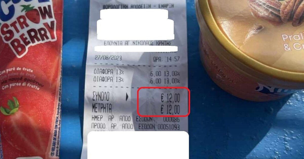 Σε επίσκεψή μας στην Σπιναλόγκα, χρεωθήκαμε, όπως μπορείτε να δείτε στη σχετική φωτογραφία που επισυνάπτω 12 ευρώ για ένα παγωτό (ατομικό) και μια γρανίτα (συσκευασμένη).