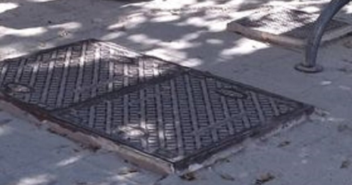 στην είσοδο της αγοράς Ηράκλειου, όπου είναι καθημερινό φαινόμενο η πτώση ανθρώπων, ως εκ θαύματος δεν έχει χτυπήσει κάποιος πολύ σοβαρά.