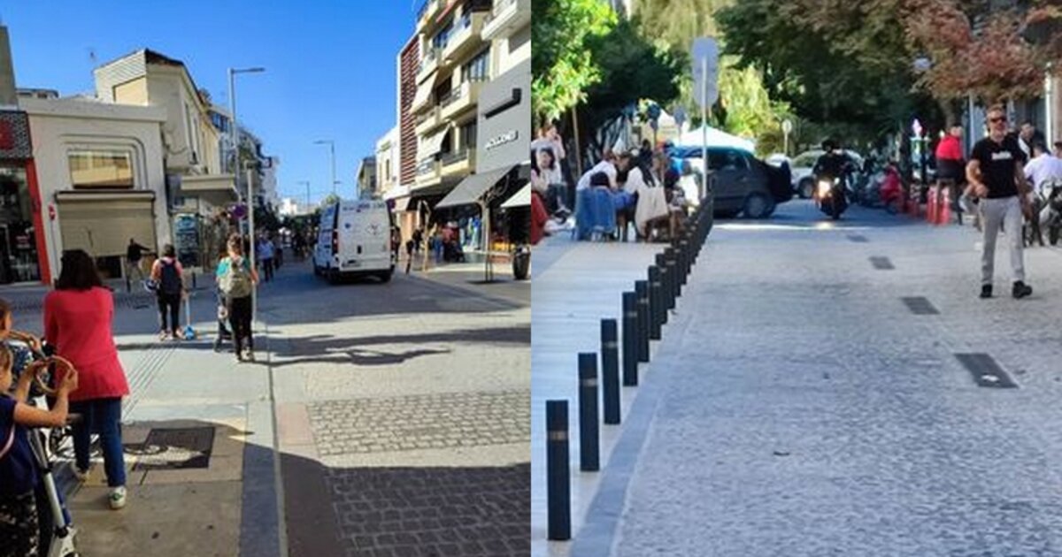 Μία ακόμα εικόνα χάους από το κέντρο του Ηρακλείου με ασυδοσία στην κυκλοφορία στους πεζόδρομους.