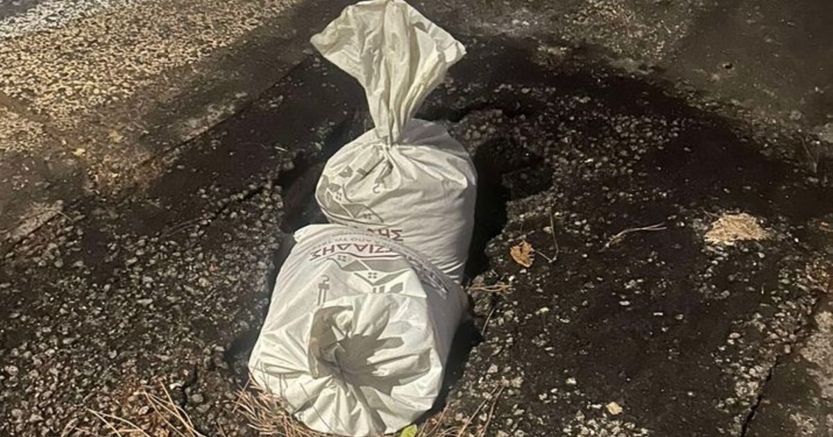 Έβαλαν σακιά για να καλύψουν τη λακκούβα!