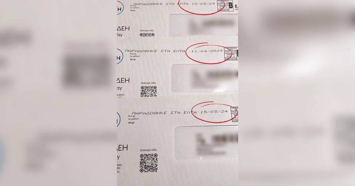 Οι λογαριασμοί, όπως φαίνεται στους φακέλους, παραδόθηκαν στα ΕΛΤΑ 11/4 και15/5 απο τη ΔΕΗ.
