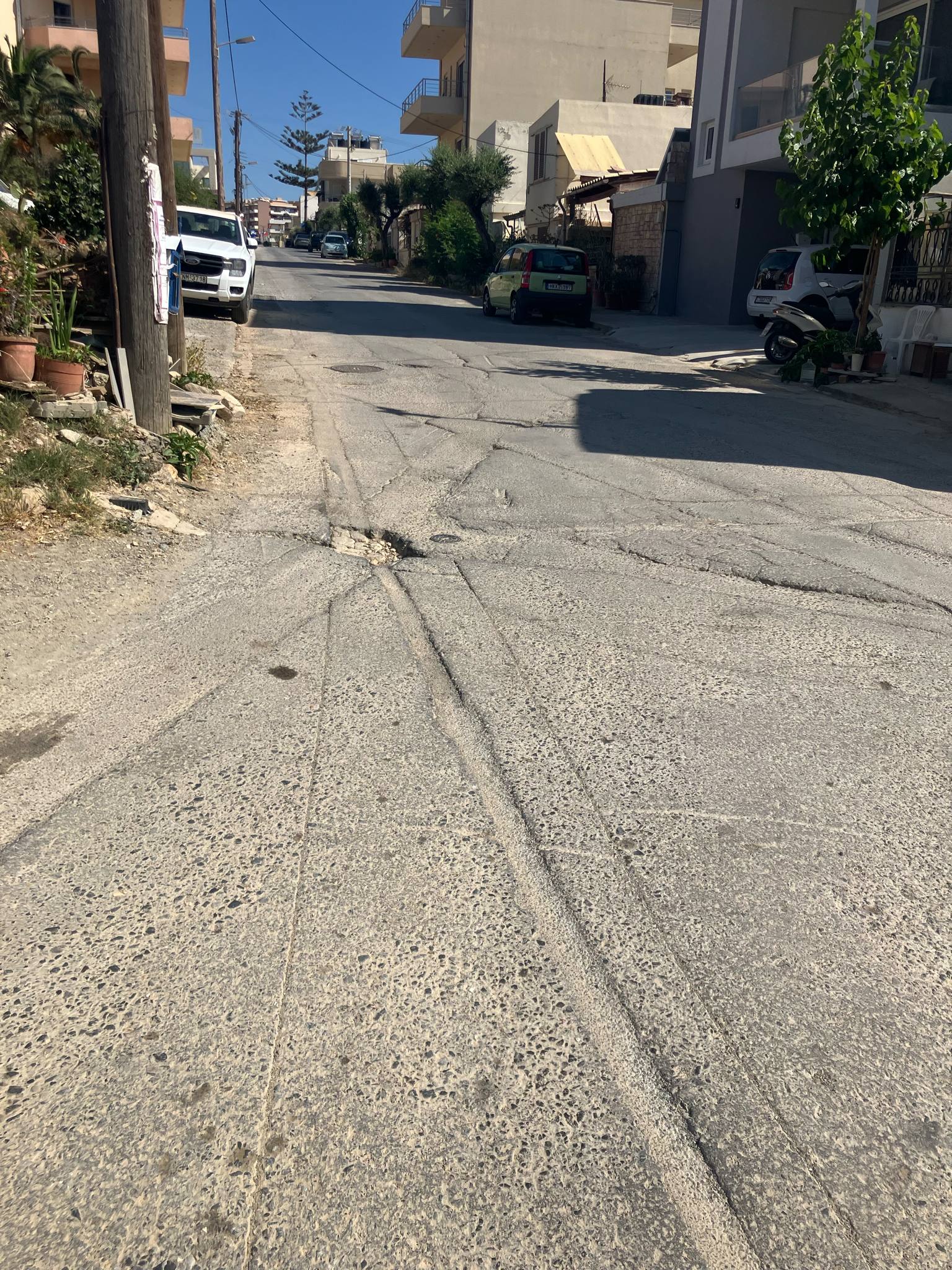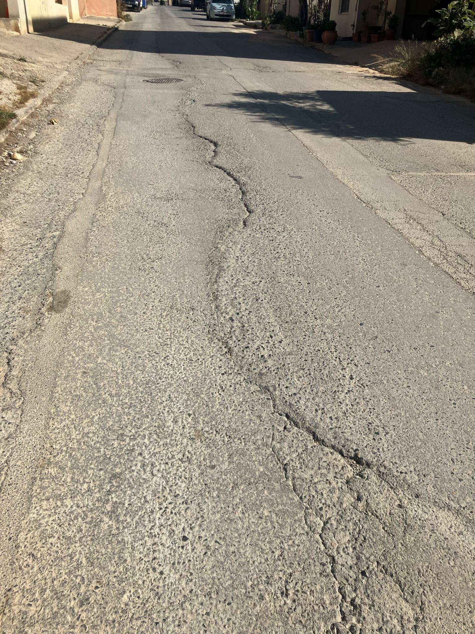 Αφού έγιναν έργα και τοποθετήθηκαν οπτικές ίνες, όπως μας είχαν πει, θα έκαναν ασφαλτόστρωση. Αντί γι' αυτό μείναμε με τις λακκούβες και τα μπαλώματα.