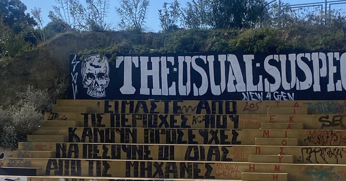 Στο σημείο που γίνονται οι πολιτιστικές εκδηλωσεις που ήταν και σημείο αφετηρίας και άφιξης έχει γραφεί ένα σύνθημα μίσους κατά της Αστυνομίας εδώ και τέσσερα χρόνια !Σημείο που λόγω του ότι ήταν και τερματισμός πολλοί αθλητές φωτογραφήθηκαν καθώς και αυτοί που έτρεχαν με τις οικογένειες τους.