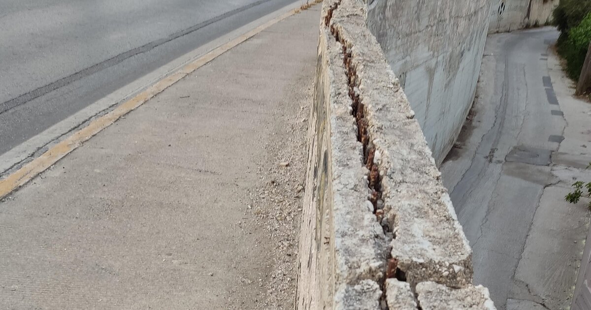 Ένα τοιχίο σε άθλια κατάσταση, στην παραλιακή λεωφόρο