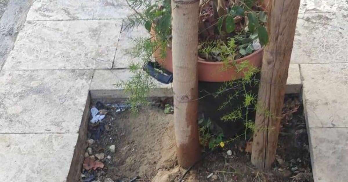 Τρία χρόνια μετα την ολοκλήρωση του έργου ανάπλασης στις οδούς Μονοφατσίου, Βικέλα, Γιαννίκου, στο Ηράκλειο, δεν έχουν βάλει σχάρες στα δένδρα με αποτελεσμα να είναι παγίδες για τους πεζούς και wc για γάτες και σκύλους...