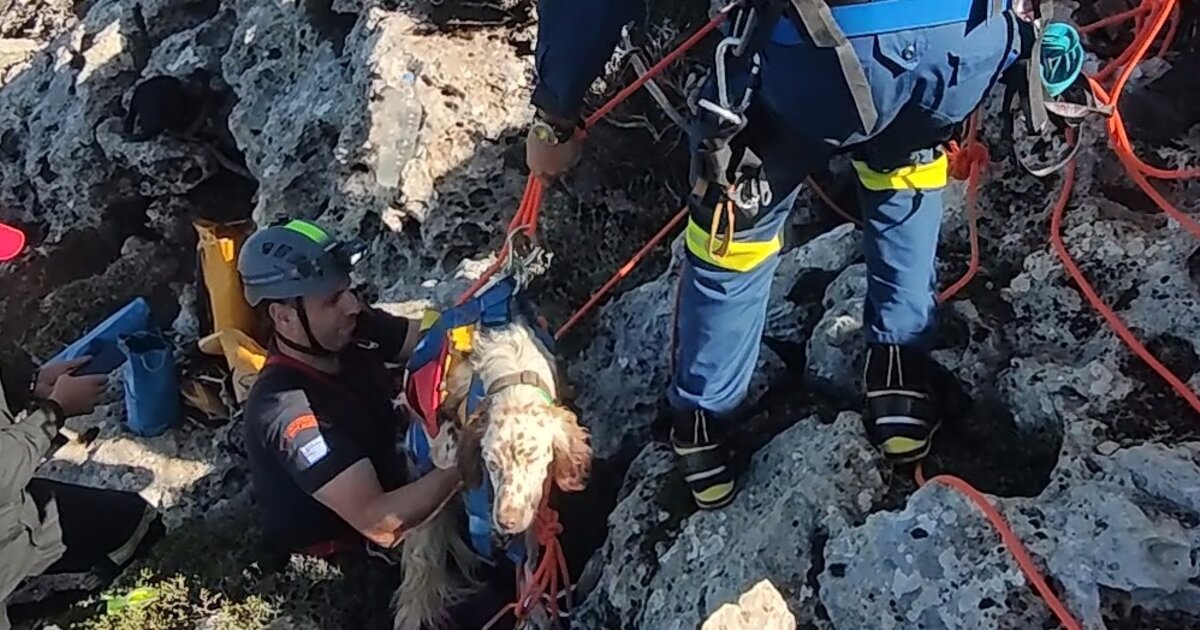 Το κλιμάκιο της ΕΜΑΚ Ηρακλείου απαρτιζομενο από 4 έμπειρα μέλη έσπευσε στο δύσβατο σημείο όπου είχε πέσει ο σκύλος.