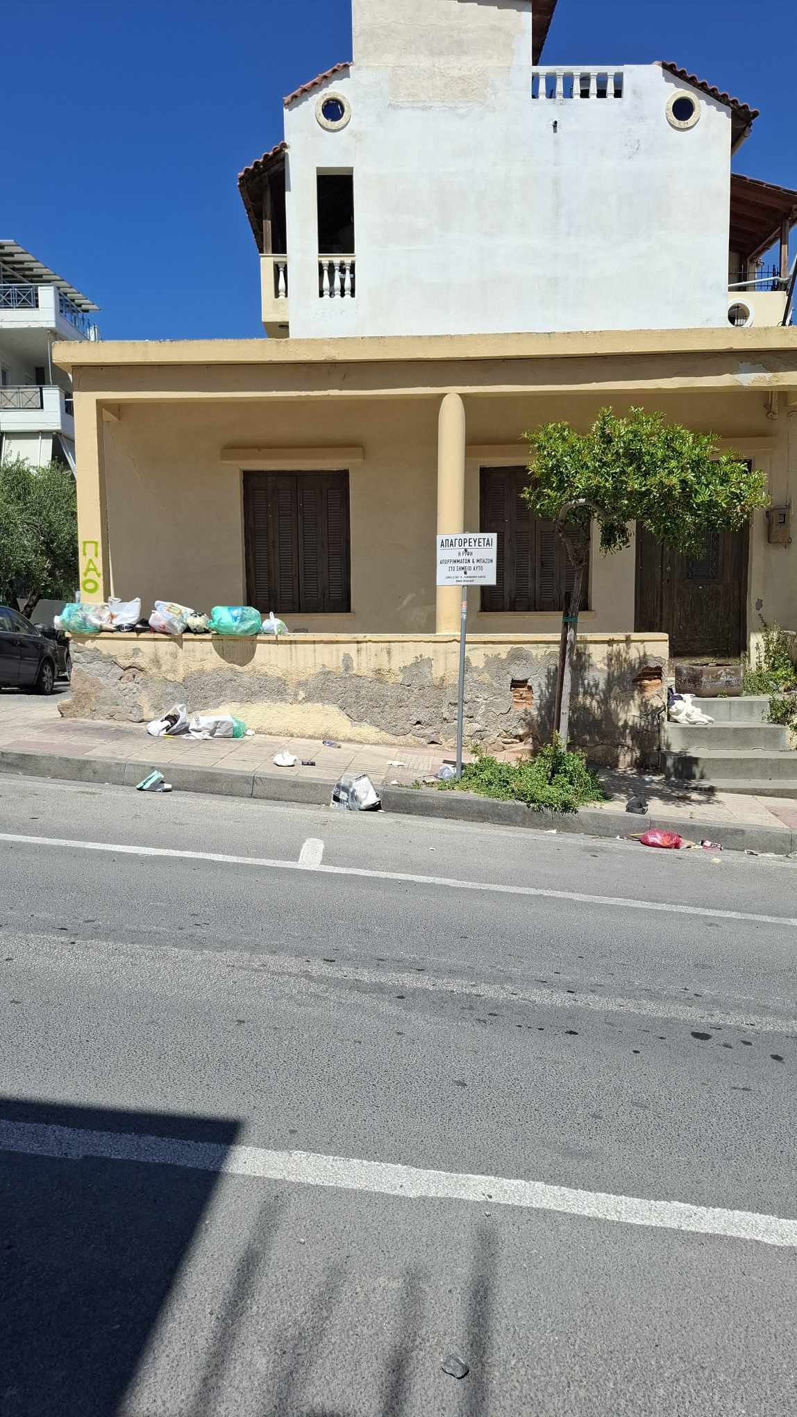 Ολόκληρη πινακίδα υπάρχει στο σημείο (οδός Παρασκευοπούλου 44) που απαγορεύει τη ρίψη απορριμμάτων και μπάζων, αλλά εμείς εκει... να δείξουμε τον "πολιτισμό" μας. Πιο γρουσούζηδες πεθαίνεις!