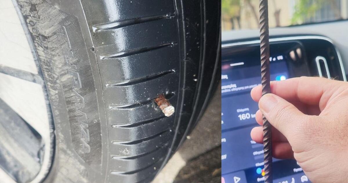 Καρφώθηκε στο λάστιχο του αυτοκινήτου