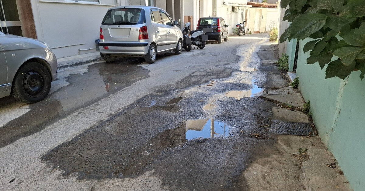 Οι φωτογραφίες αποτυπώνουν τη μόνιμη κατάσταση σε στενό του αστικού ιστού και πιο συγκεκριμένα στην οδό Κουρμούληδων, στο κέντρο του Ηρακλείου: λακκούβες γεμάτες νερό, υγρασία στα πεζοδρόμια, συνεχής διαρροή από άγνωστη πηγή. Κανένα προειδοποιητικό σήμα, καμία τεχνική παρέμβαση. Την ίδια στιγμή, κάτοικοι περιοχών του Ηρακλείου καταγγέλλουν ότι μένουν χωρίς σταγόνα για ώρες, ακόμη και μέρες.