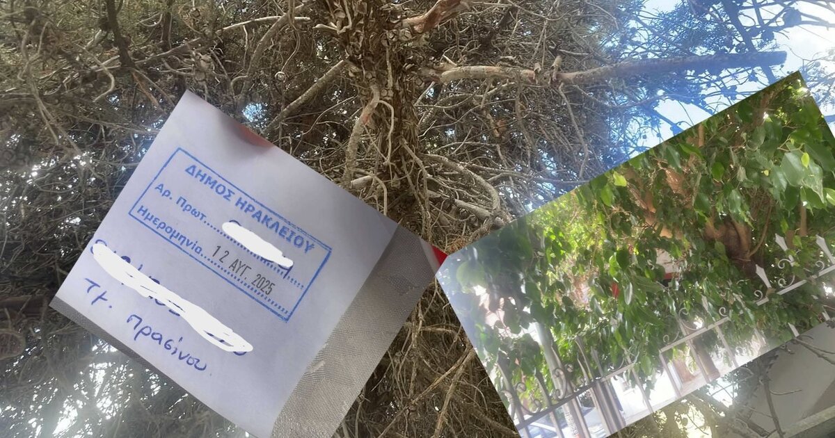 Είμαι κάτοικος του Μασταμπά, στο Ηράκλειο. Στην περιοχή μας υπάρχει σοβαρός κίνδυνος δυστυχήματος εξαιτίας δύο δέντρων.