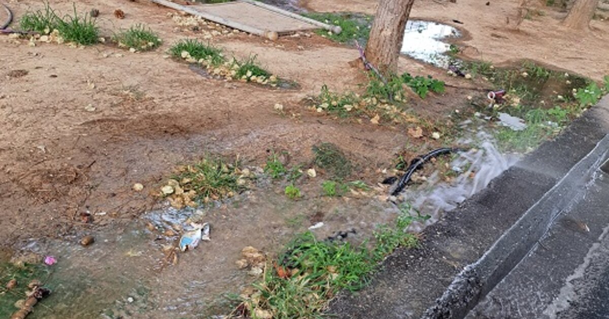 Στην οδό Ιερολοχιτών και Σμπώκου τρέχει το νερό κάθε φορά που ποτίζονται τα φυτά.