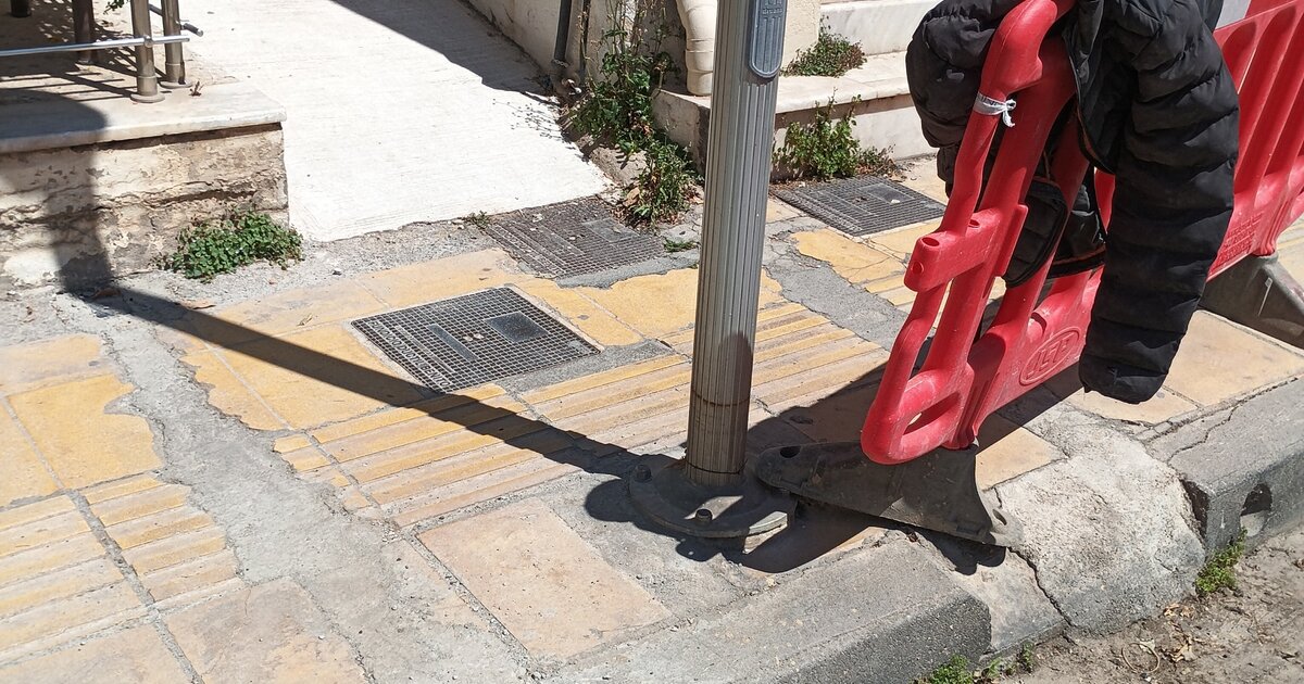 3. Ο τροπος τοποθετησης των πλακων των οδηγων τυφλων οταν εγινε η αναπλαση των πεζοδρομιων με το χαρακτηριστικο κιτρινο χρωμα