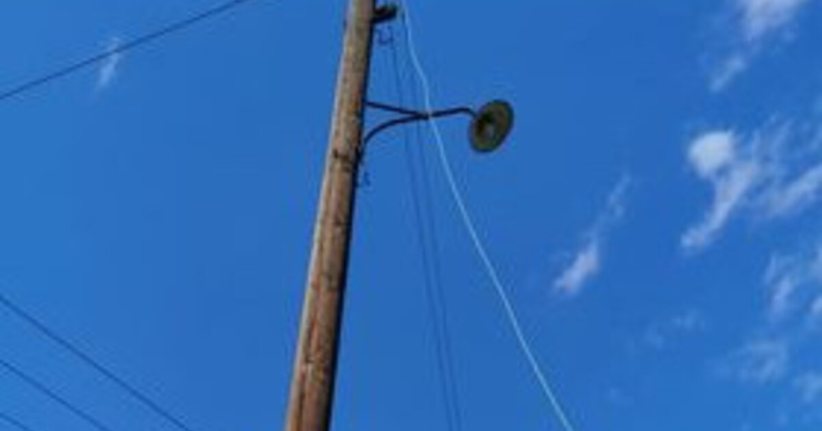 Έχει σπάσει το συρματόσχοινο που κοντράρει το στύλο, ακουμπάει στην μεταλλική περίφραξη και επάνω θέλει 10 εκατοστά να ακουμπήσει στο καλώδιο ρευματοδότησης.